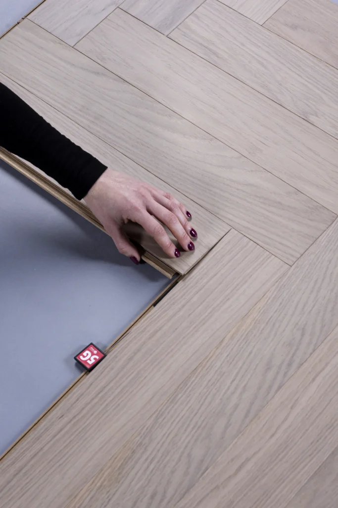 Panels can be easily dismantled using the 5G dismantling pin. This makes correcting mistakes during installation quick and risk-free. It also allows the floor to be removed and reinstalled elsewhere, supporting circularity and sustainability by extending use and reducing waste.
