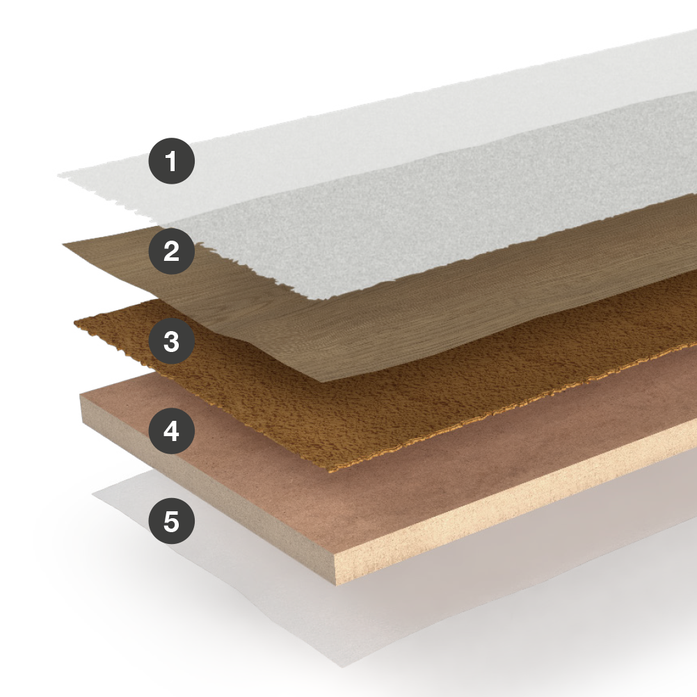 Wood Powder Laminate combines a layered structure with an integrated powder technology that enhances both surface performance and core stability.